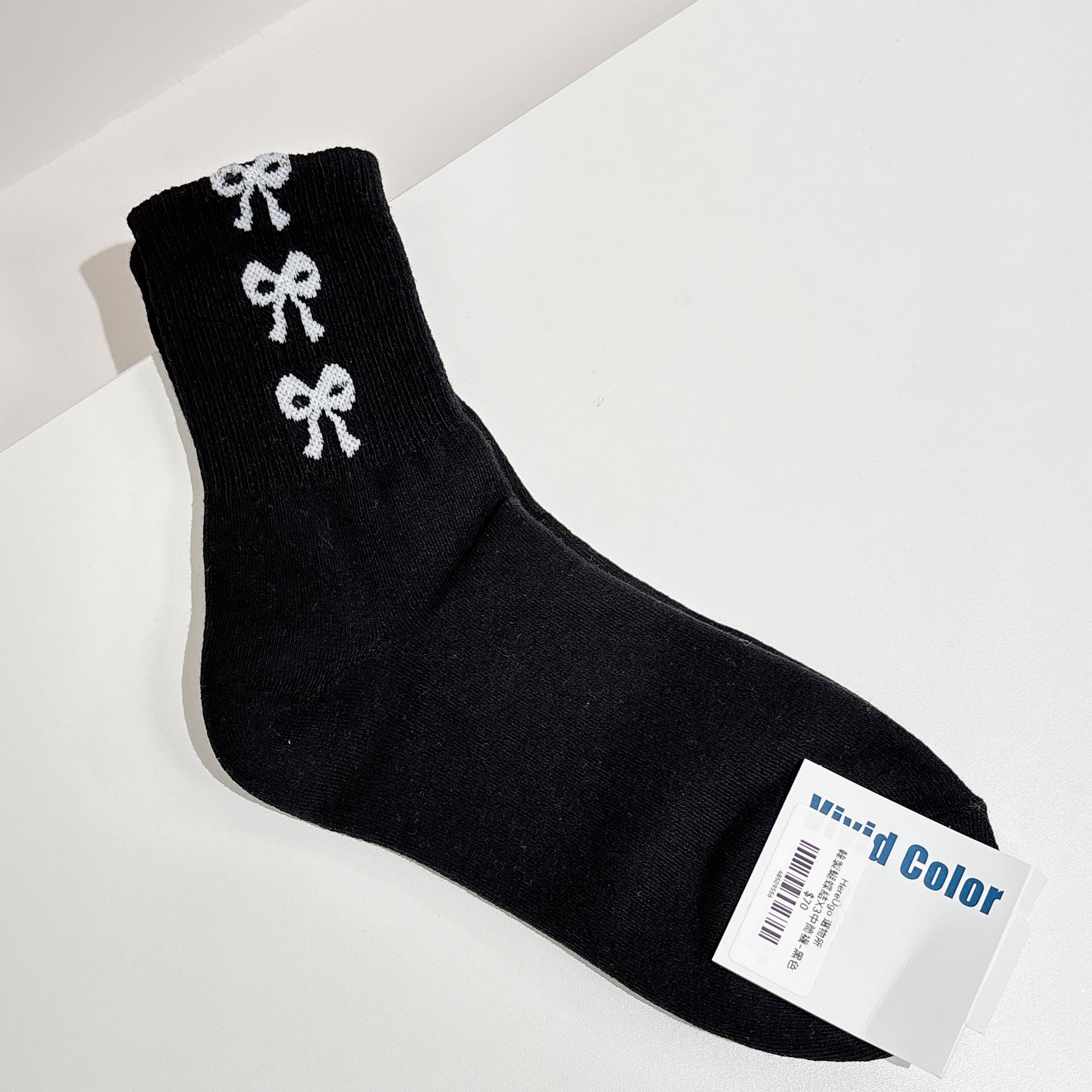 韓製。蝴蝶結X3中筒少淑女襪(2色)