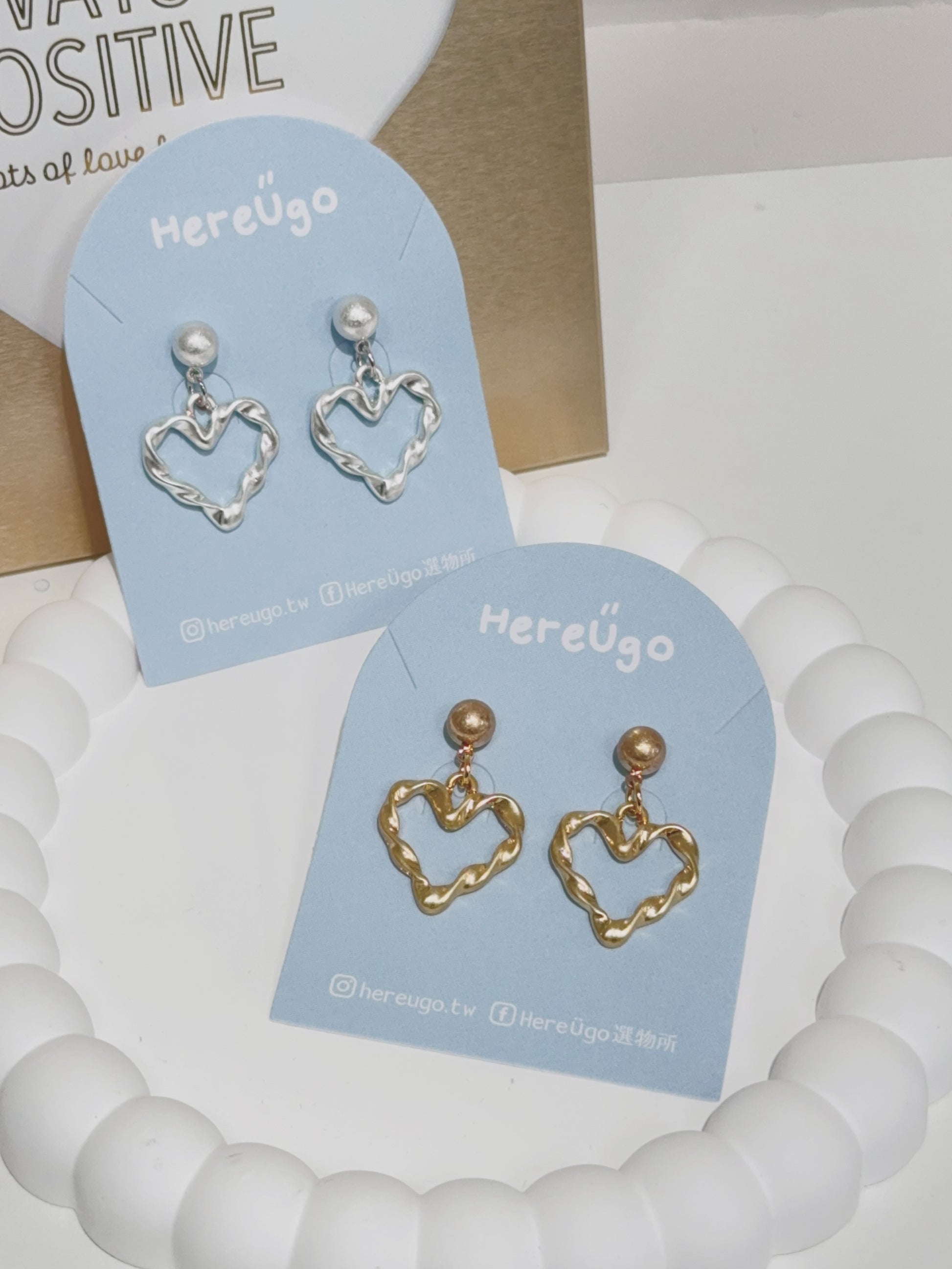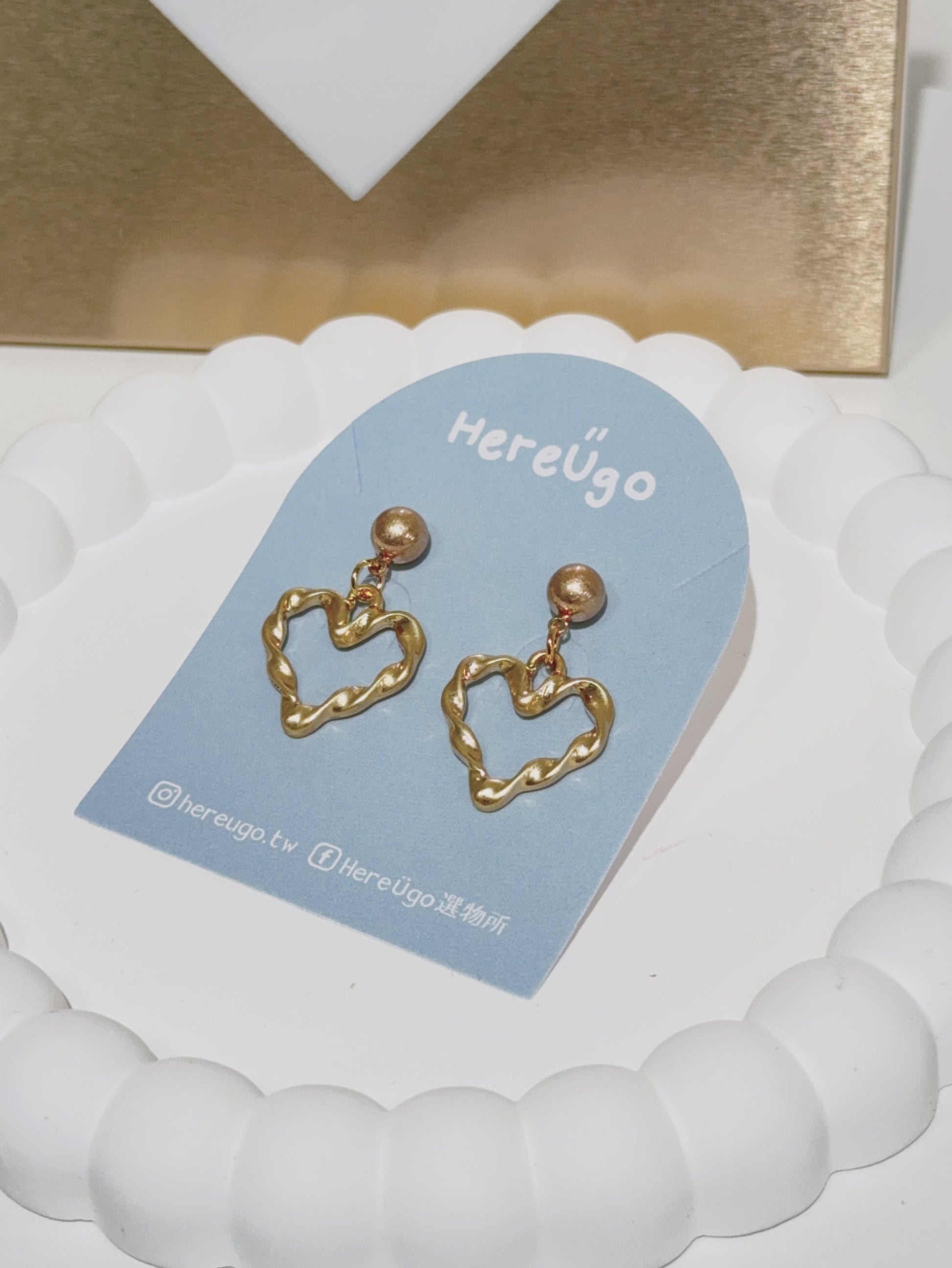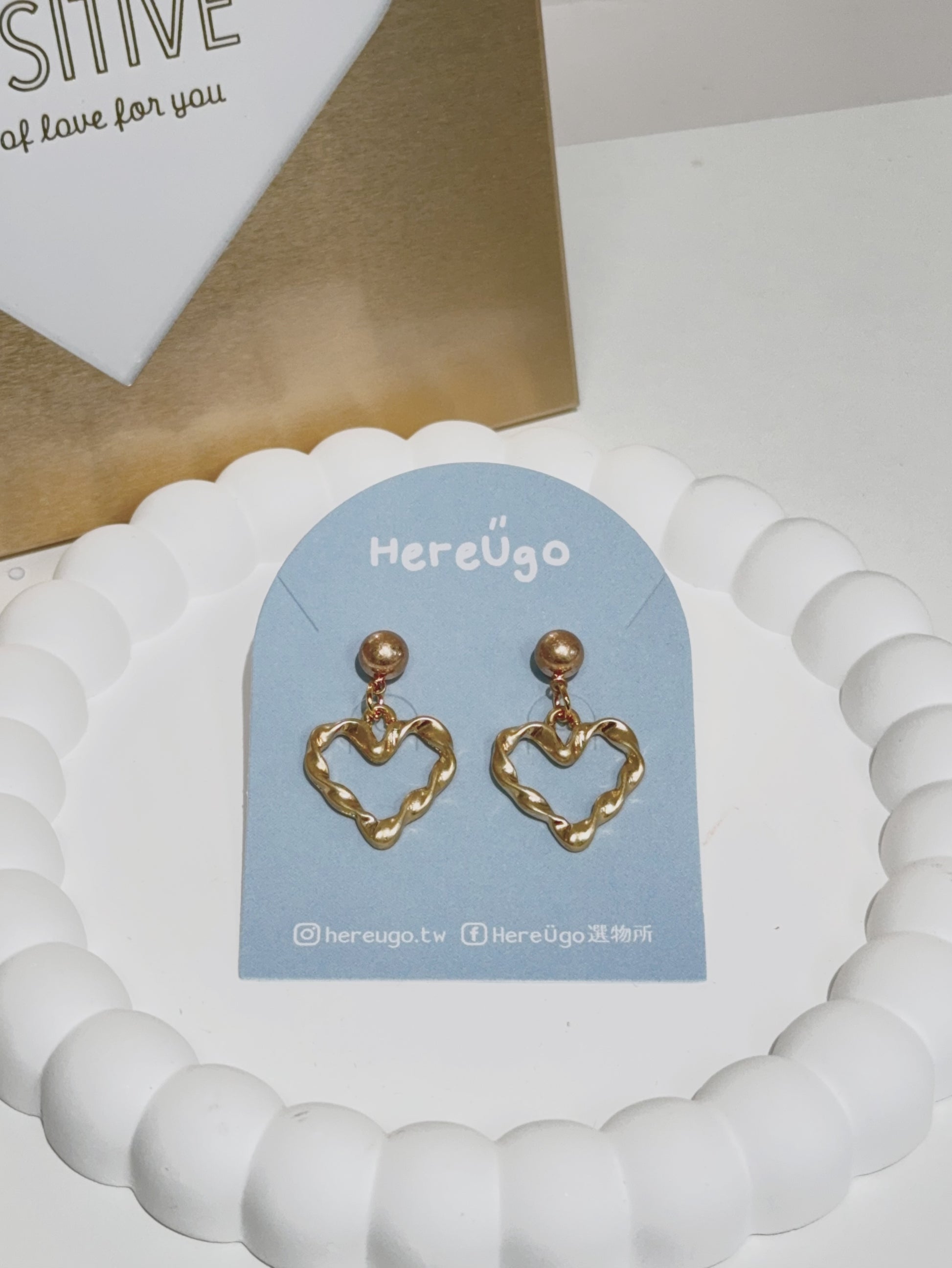 韓製。垂墜心型圈耳針式耳環 | 醫療鋼耳針 (兩色)