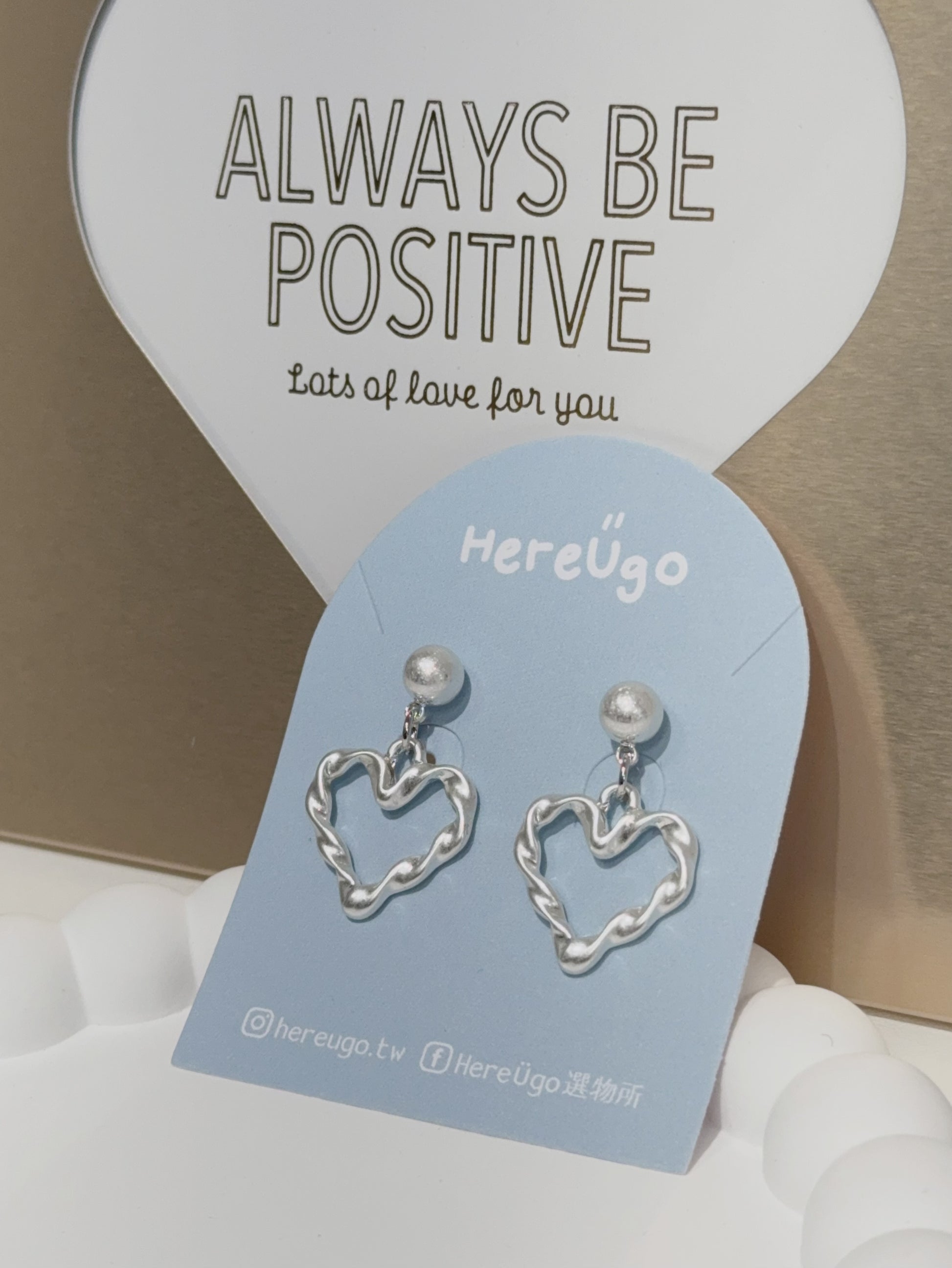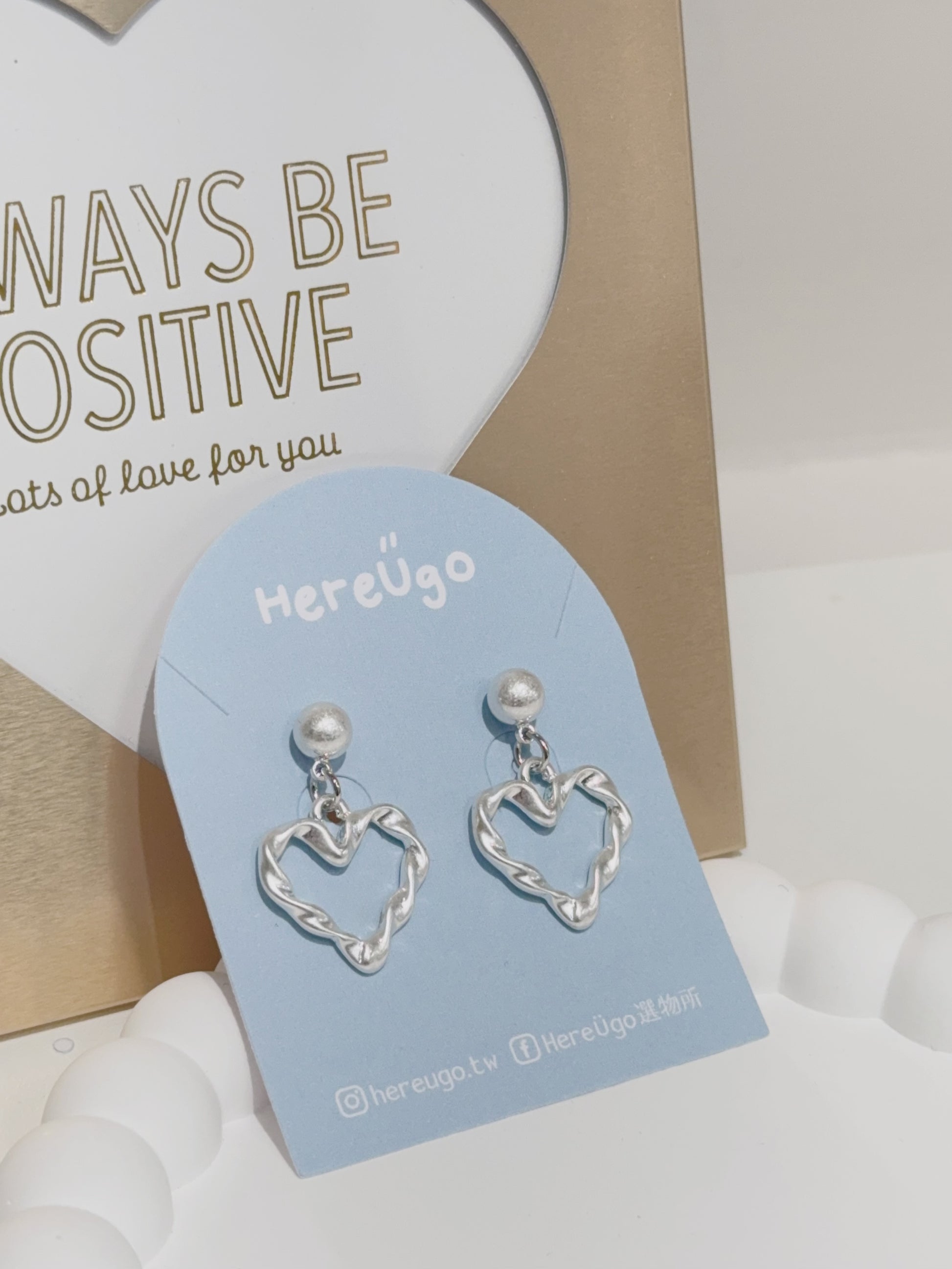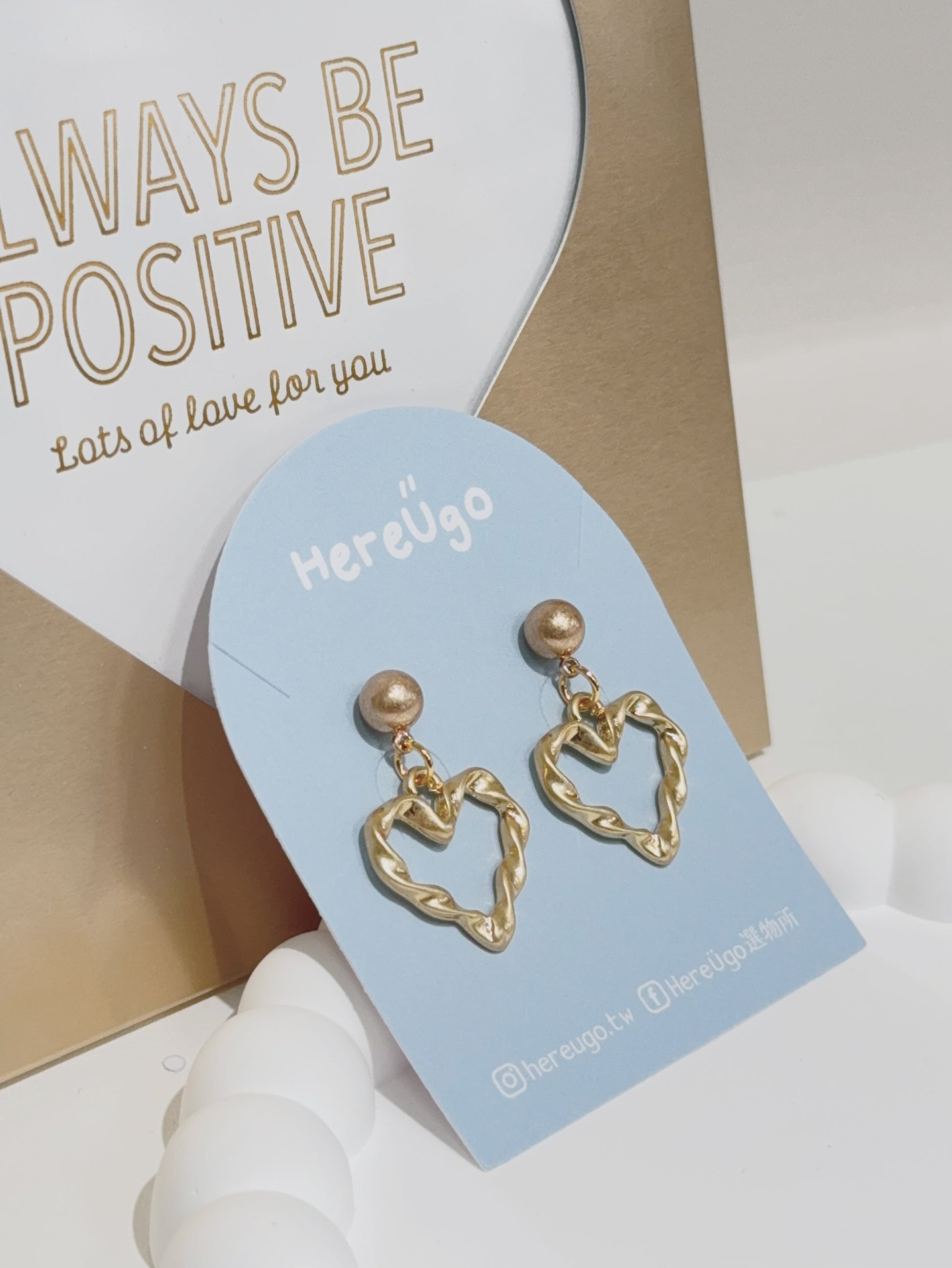韓製。垂墜心型圈耳針式耳環 | 醫療鋼耳針 (兩色)