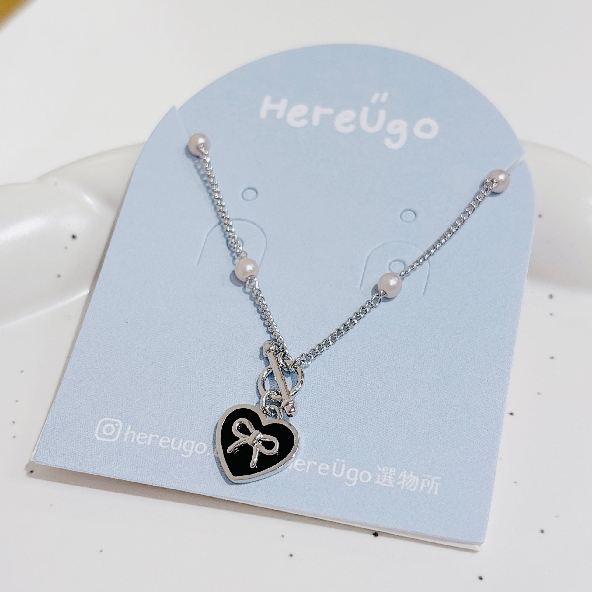 心型蝴蝶結吊牌,搭配精巧小珍珠