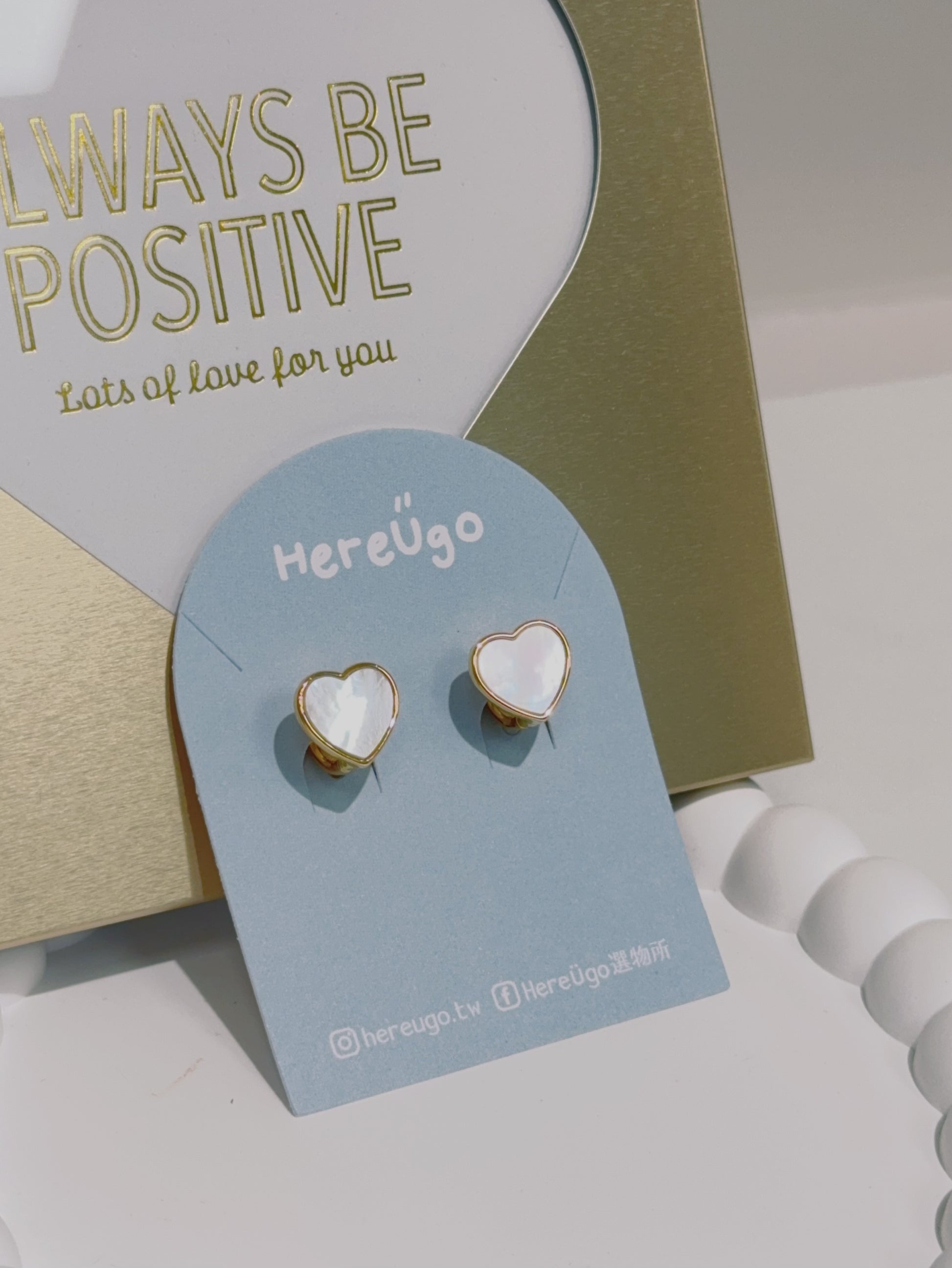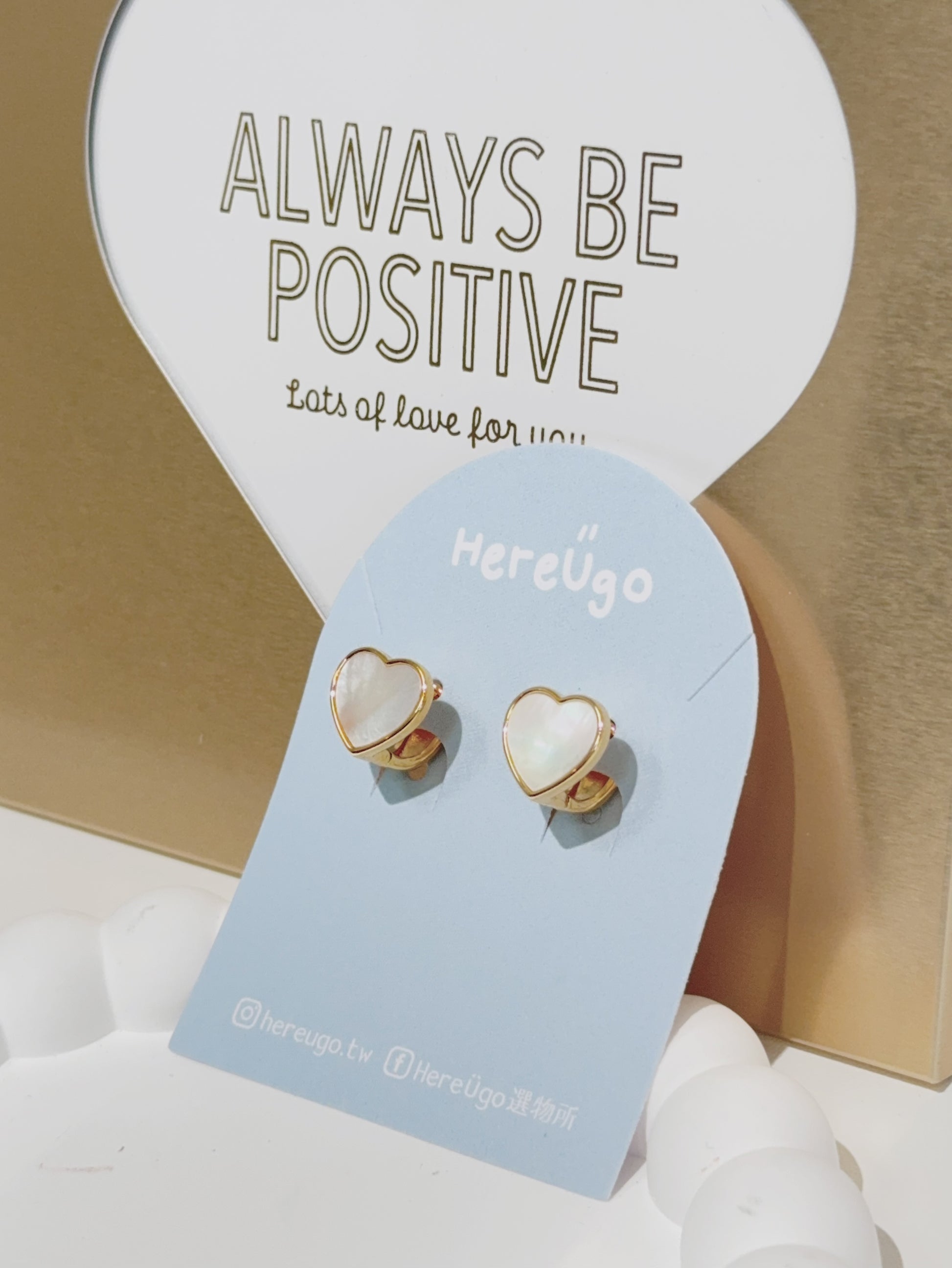 韓製。金邊愛心絢彩貝殼光耳針式耳釦/環