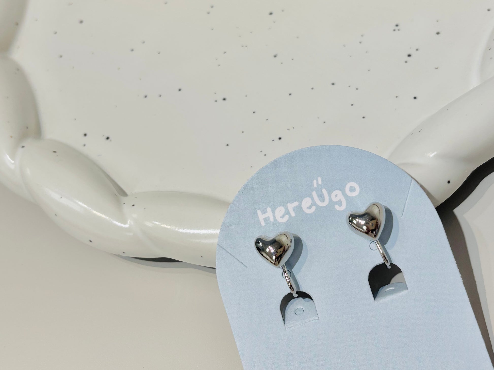 韓製。立體胖愛心無痛夾式耳環 (2色)