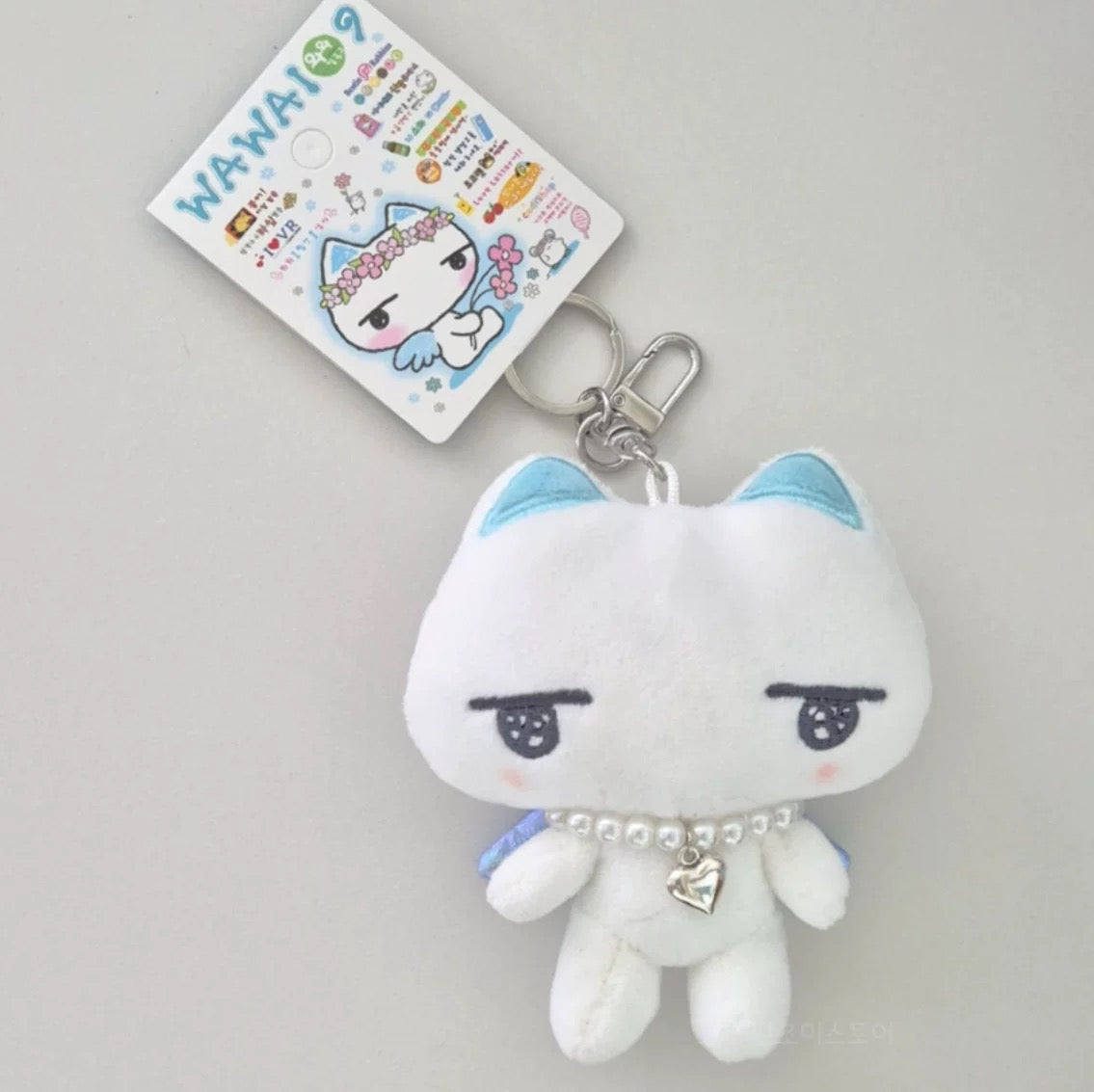 [WAWA109] 天使貓愛心珍珠項鍊掛飾/鑰匙圈